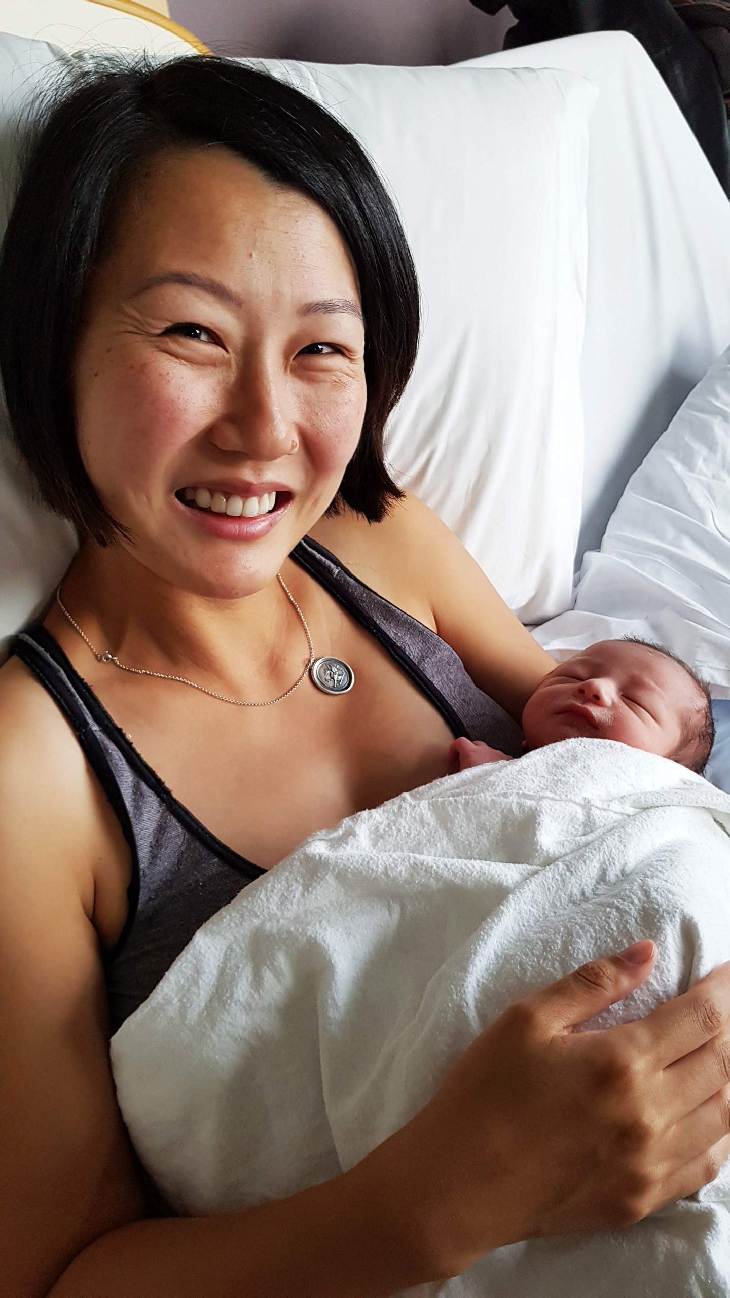 "I was reunited with my babe once I was in recovery and spent the night staring at my magic fiddling baby," she said.